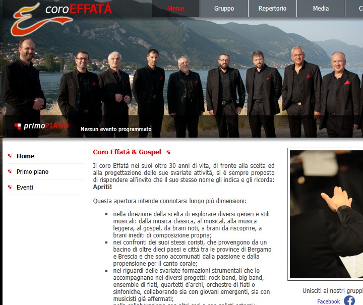 Sito web di un coro gospel di Sarnico (Bg) con un'ampia sezione dedicata a progetti e brani del repertorio.