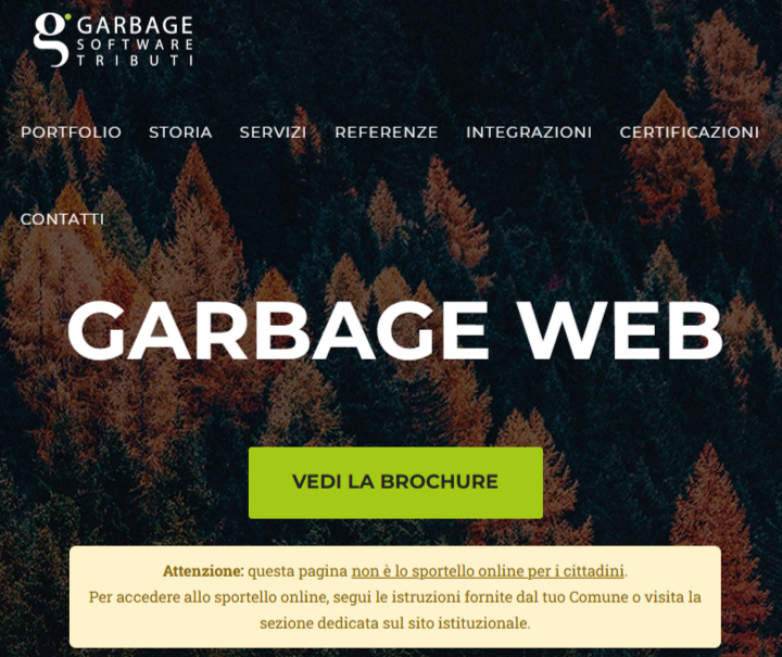 Sito web brochure dell'applicazione web Garbage inerente la gestione dei rifiuti.